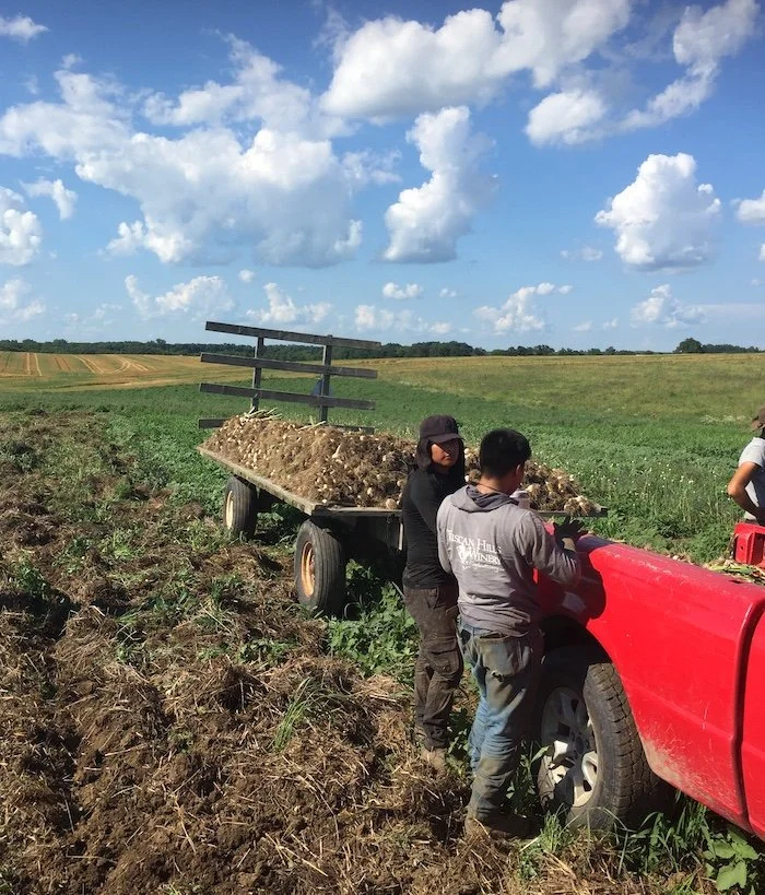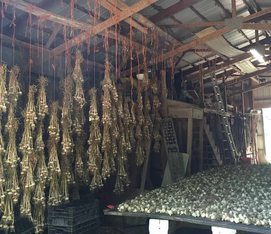 This has been the week of Henry’s Great Garlic Harvest, and the barn is now full of all the different varieties from the 2025 garlic crop, some of which you will see at the market this week!
