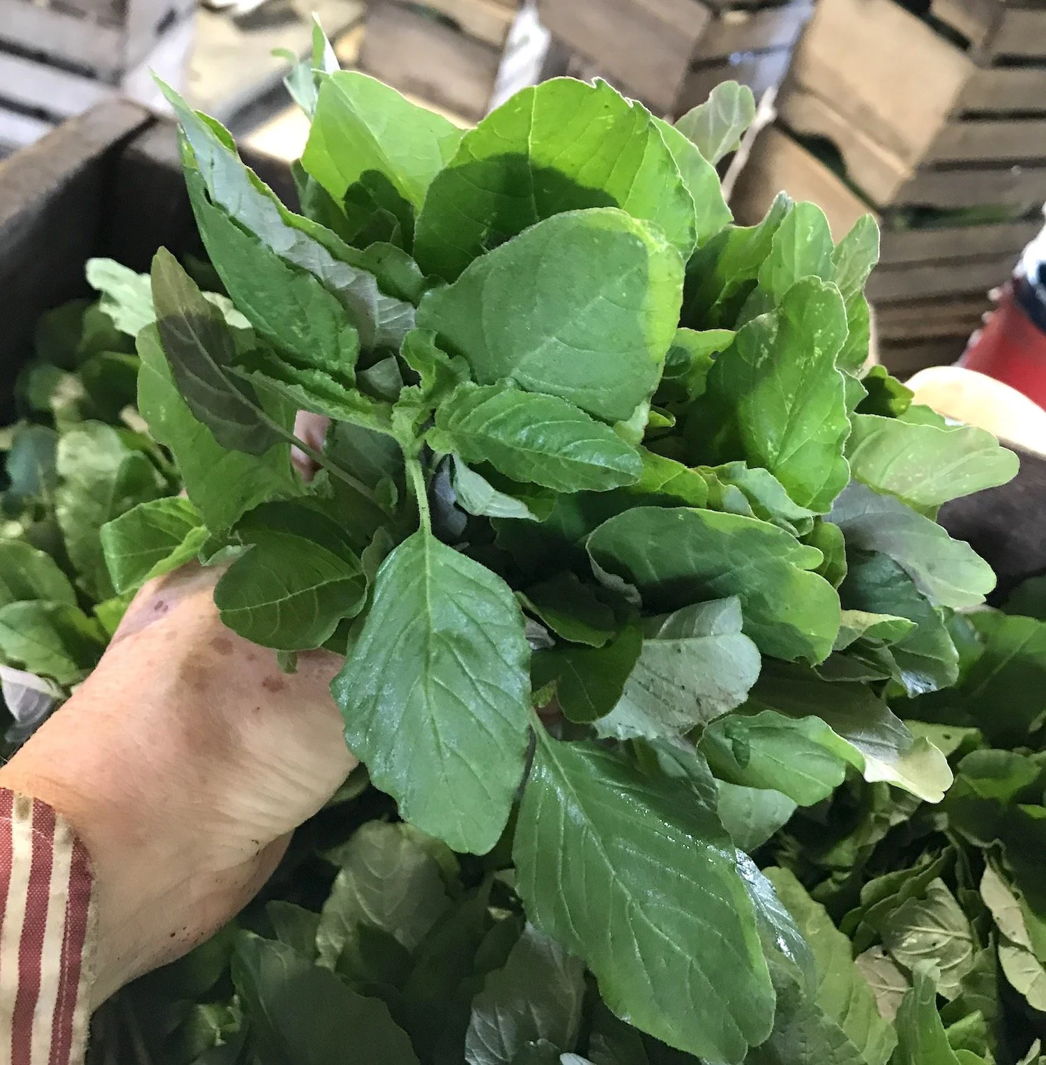 This is a bunch of Amaranth Greens from earlier in the season, and the bunches you see at the market this week will be bigger.