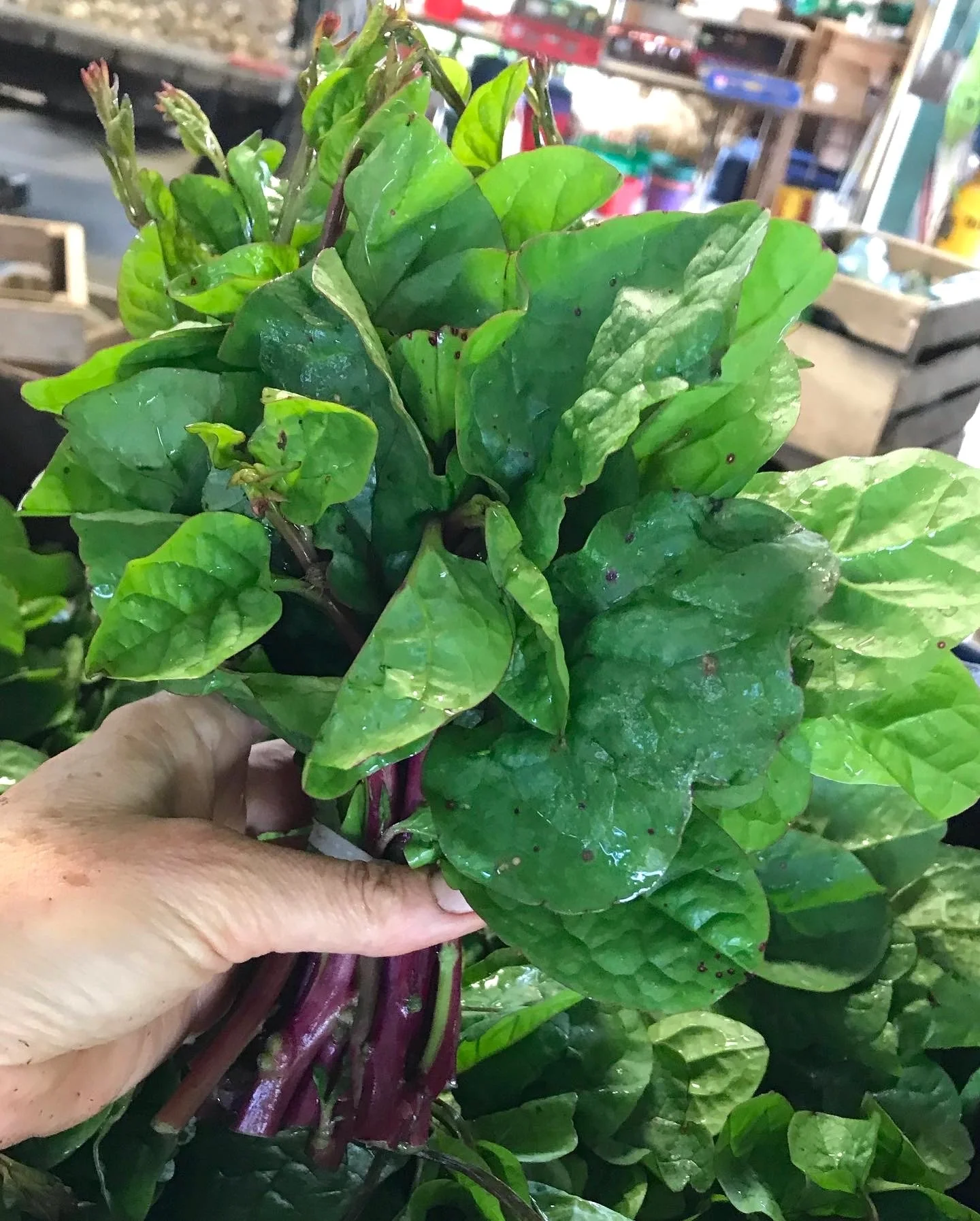 The burgundy stems and glossy green leaves of Malabar Spinach are beautiful and delicious, and can be used raw or cooked, in salads, stir-fries, and more!